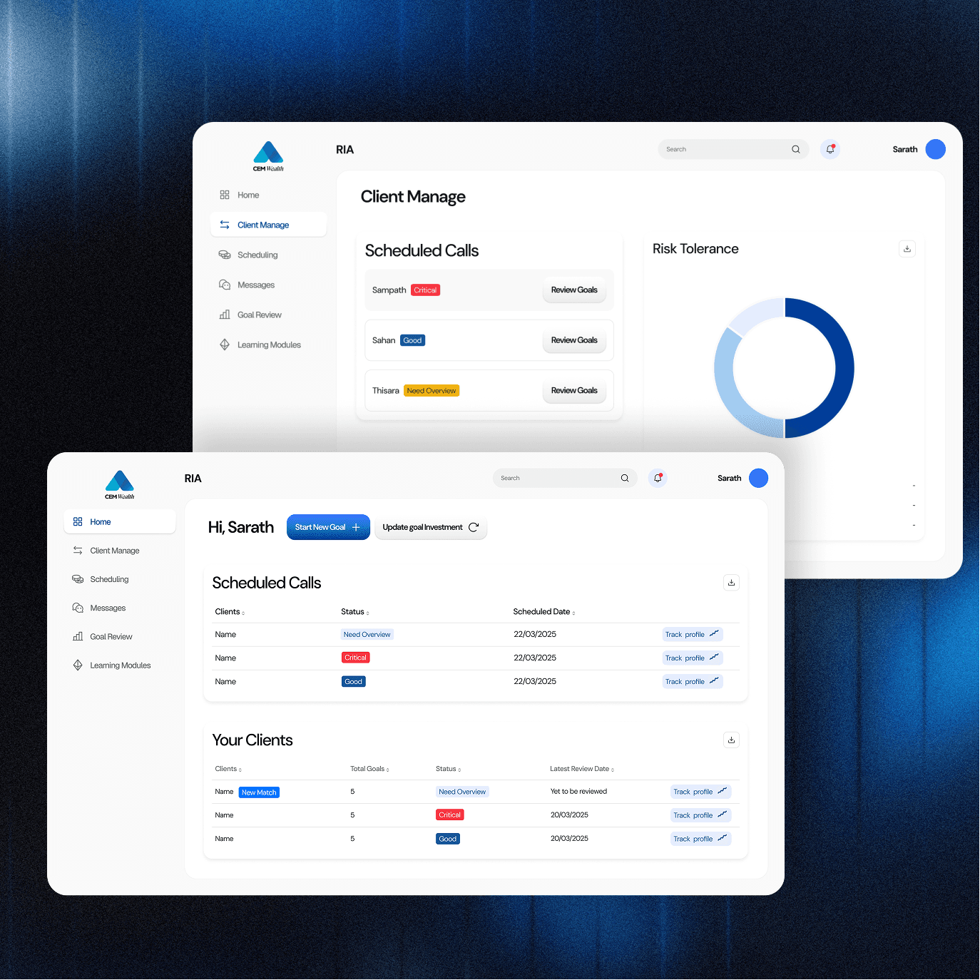 RIA Analytical Command Center | RIA | Enabling advisors to manage large client volumes without losing oversight. |