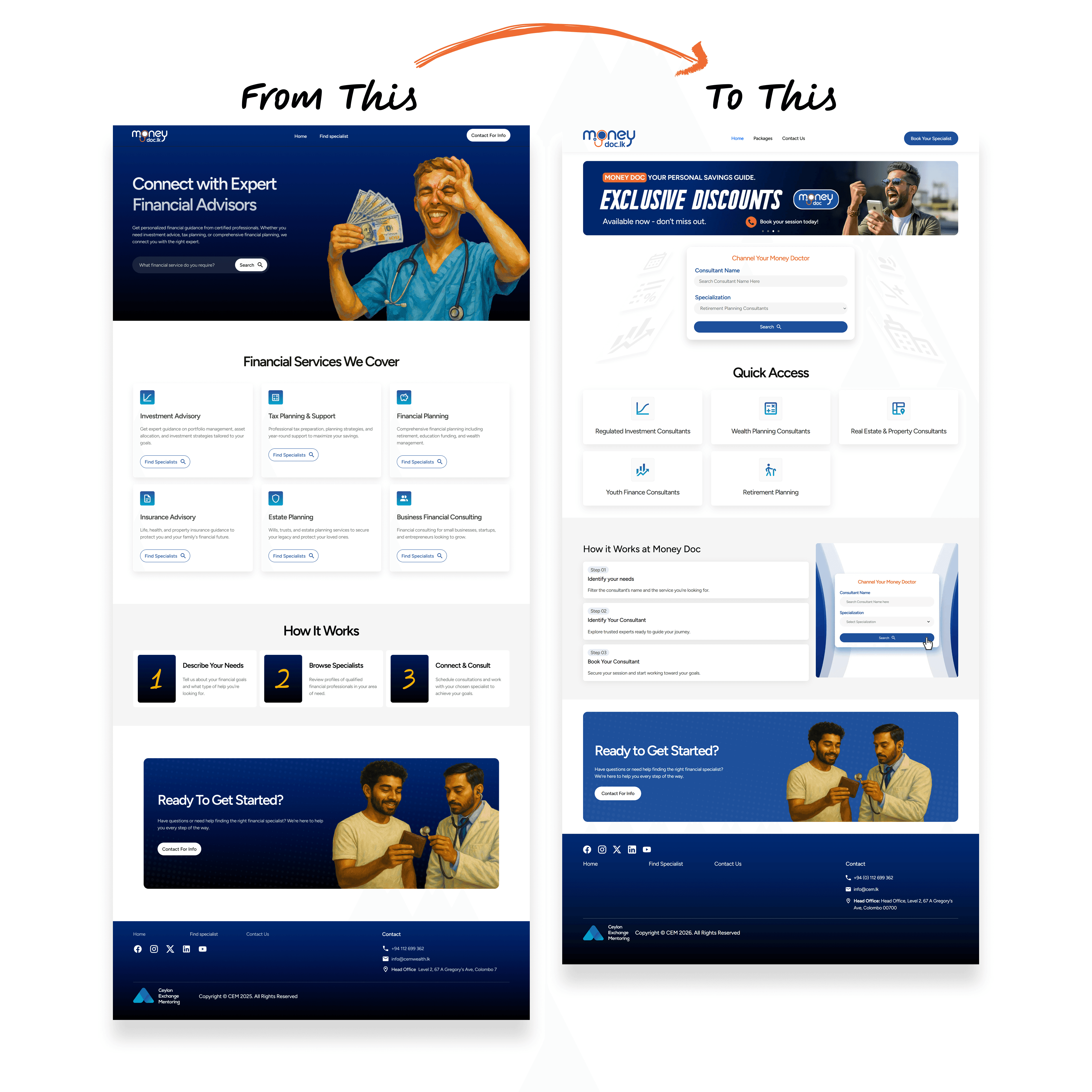 The Sri Lankan financial advice landscape is often perceived as gate-kept, expensive, and intimidating. Users struggle with specific "money problems" from retirement planning to property disputes—but don't know who to trust or how much it will cost. The Challenge: A Crisis of Trust & Clarity