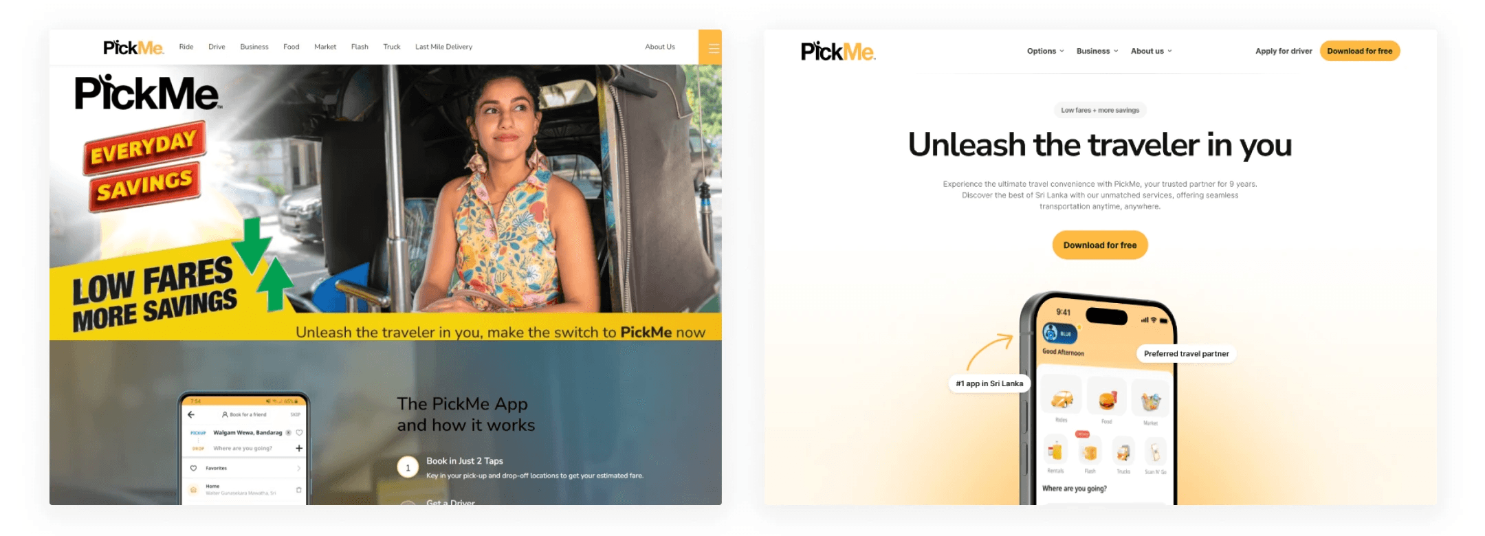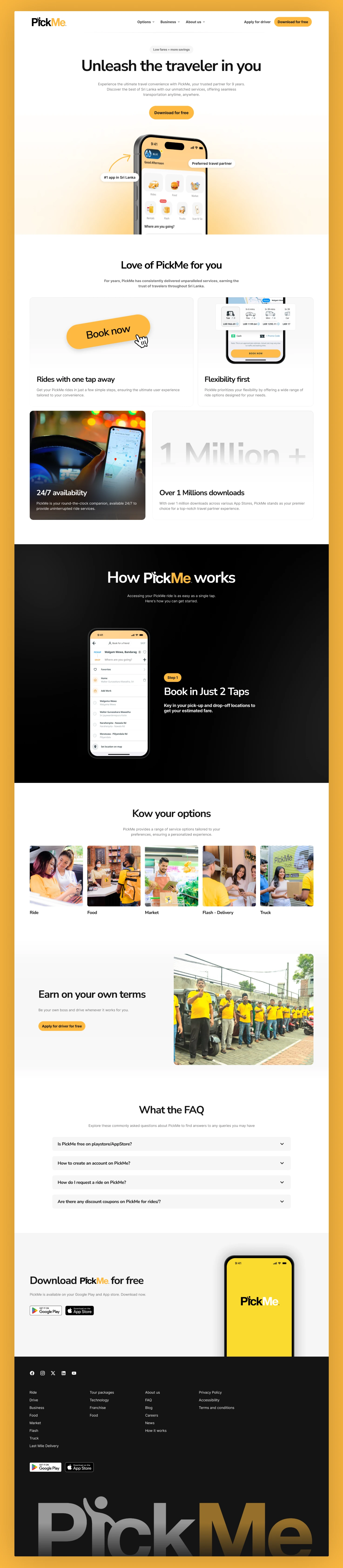 Full High Quality view of the redesigned PickMe landing page 👀💛